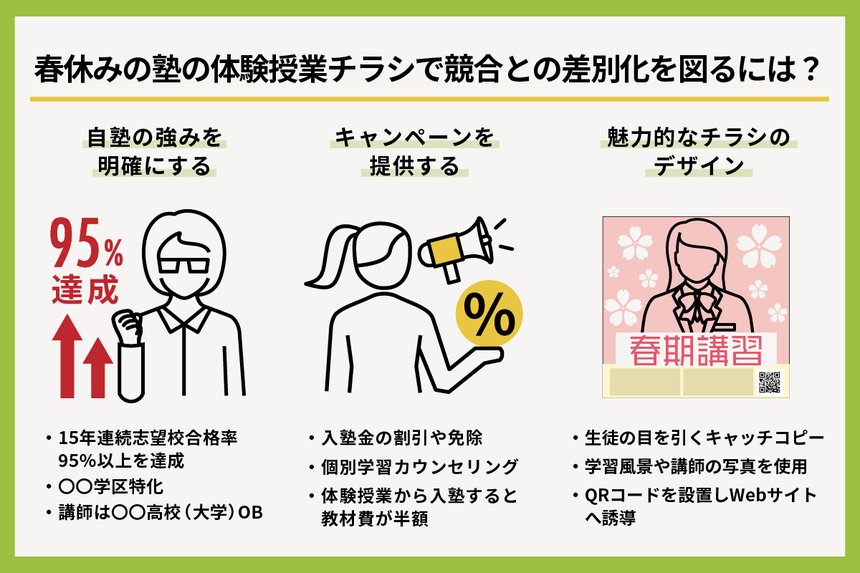 なお、専門業者や広告代理店に依頼する際は、商品を提供している側として、自社で扱っている商品の価値や背景、思い、顧客にとっての便益をきちんと言語化することが重要です。こうした商品の情報をきちんと伝えることができれば、レスポンス率の高いチラシを作ってくれるはずです。